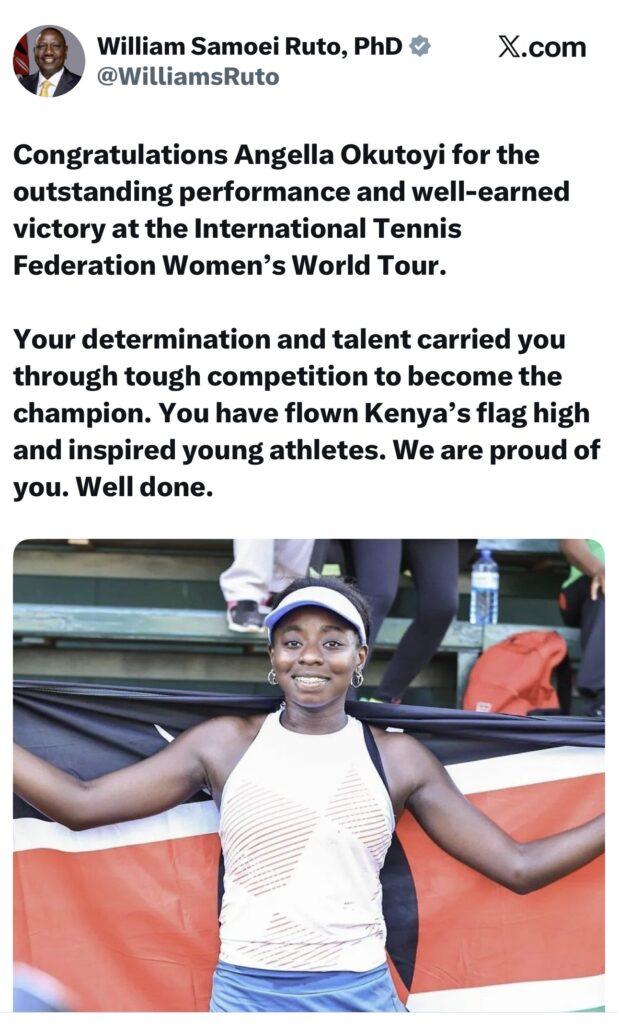 It was more than another trophy; it was confirmation that Kenya has a genuine contender on the global tennis stage and one whose rise has now caught the attention of President William Ruto and Sports Cabinet Secretary Salim Mvurya.